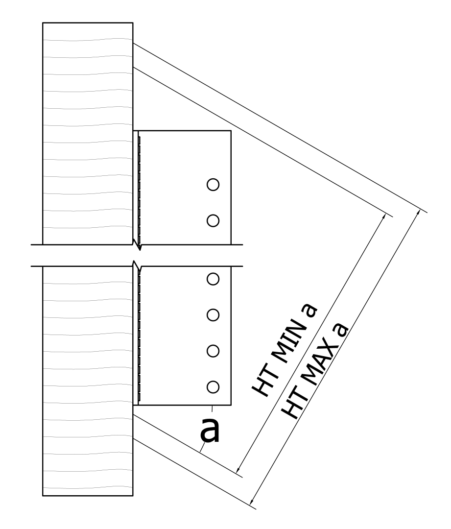 Der Schnitt im Nebenträger ist mittig anzuordnen, d.h. zwischen den Reihen der Nagellöcher im Hauptträger. Die Schnittiefe entspricht ca. der Abmessung B des BTALU + 4 mm = ca. 107 - 112 mm.