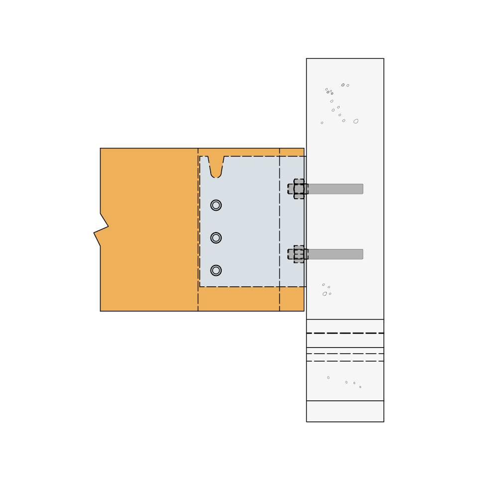 Die Anzahl und Tragfähigkeit der Ankerbolzen sollte nach ETA und Typ des Verankerungsgrunds geprüft werden. Die angegebene Anzahl an Bolzen in der Tabelle ist die maximal mögliche. Sollte die Tragfähigkeit der Bolzen maßgebend sein, gilt diese als Maximaltragfähigkeit der Gesamtverbindung.