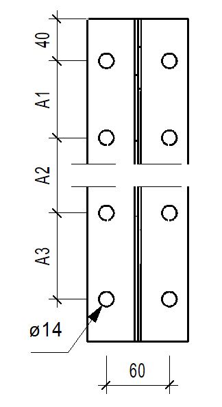 | Höhe | A | B | C | t1 | t2 | Ø14 | 40-A1-A2-A3 [mm] | Ø13 | |||