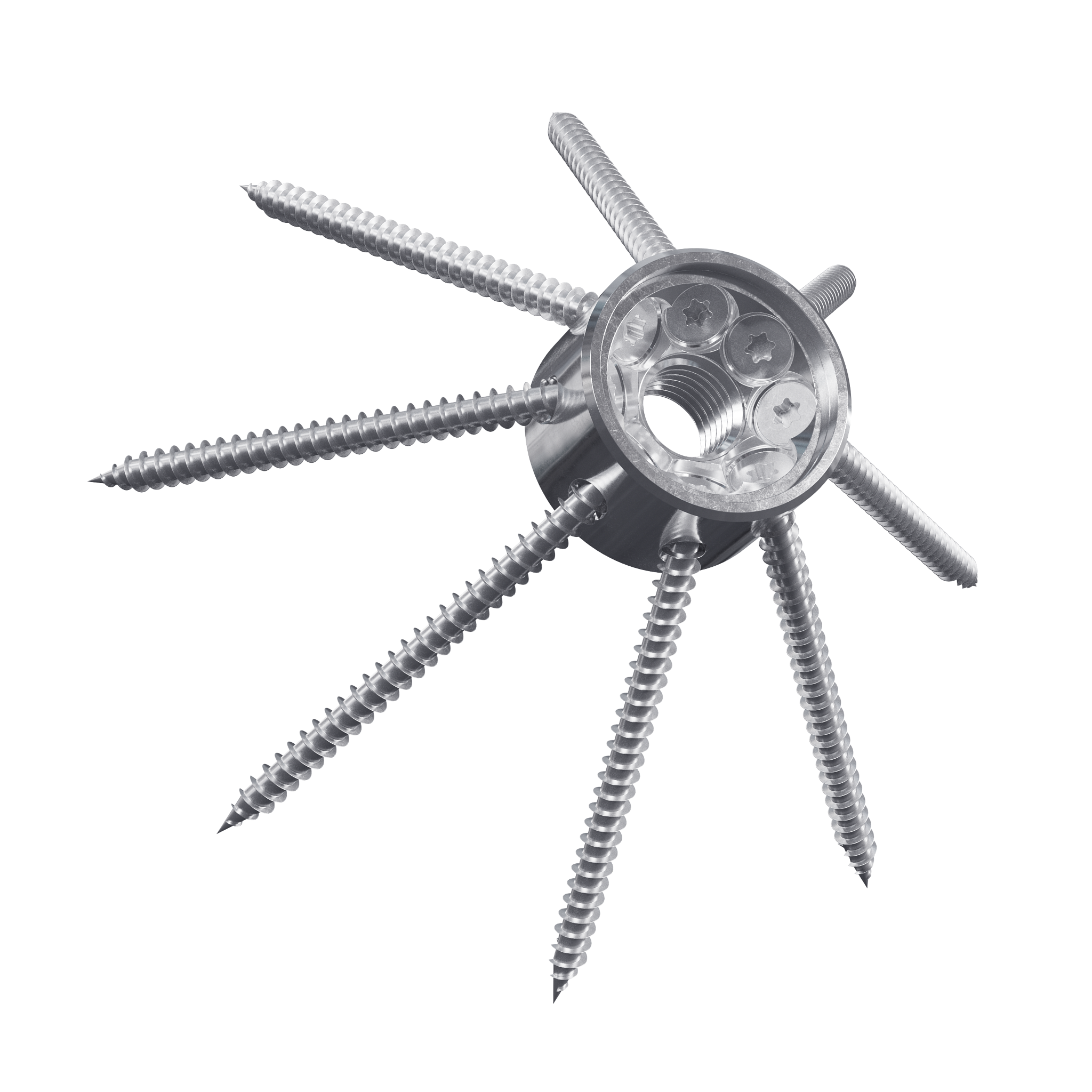 Der CCS-Verbinder, auch unter dem Namen "Hydra" bekannt, ist für Holz-Holz- oder Holz-Stahl-Verbindungen konzipiert. Er ist für Zug- und Scherbelastung ausgelegt.