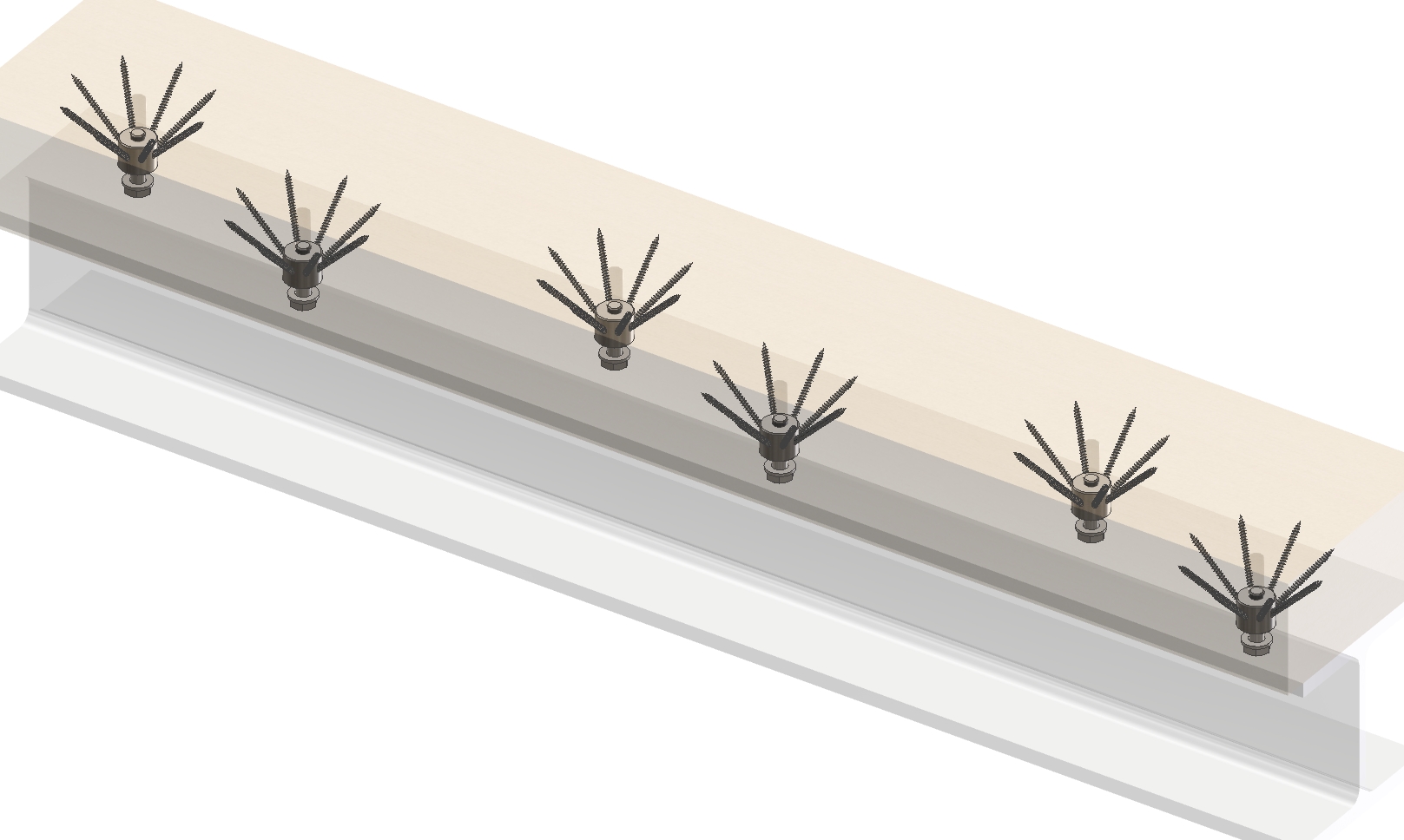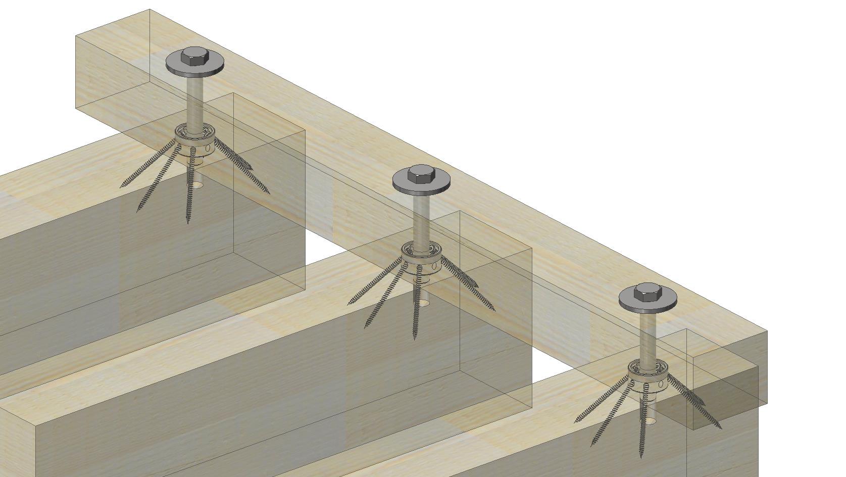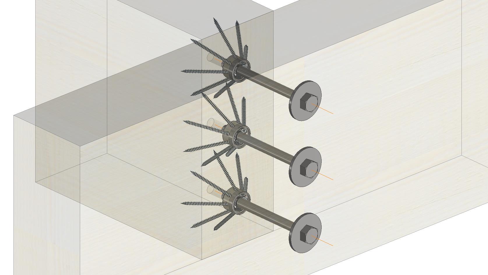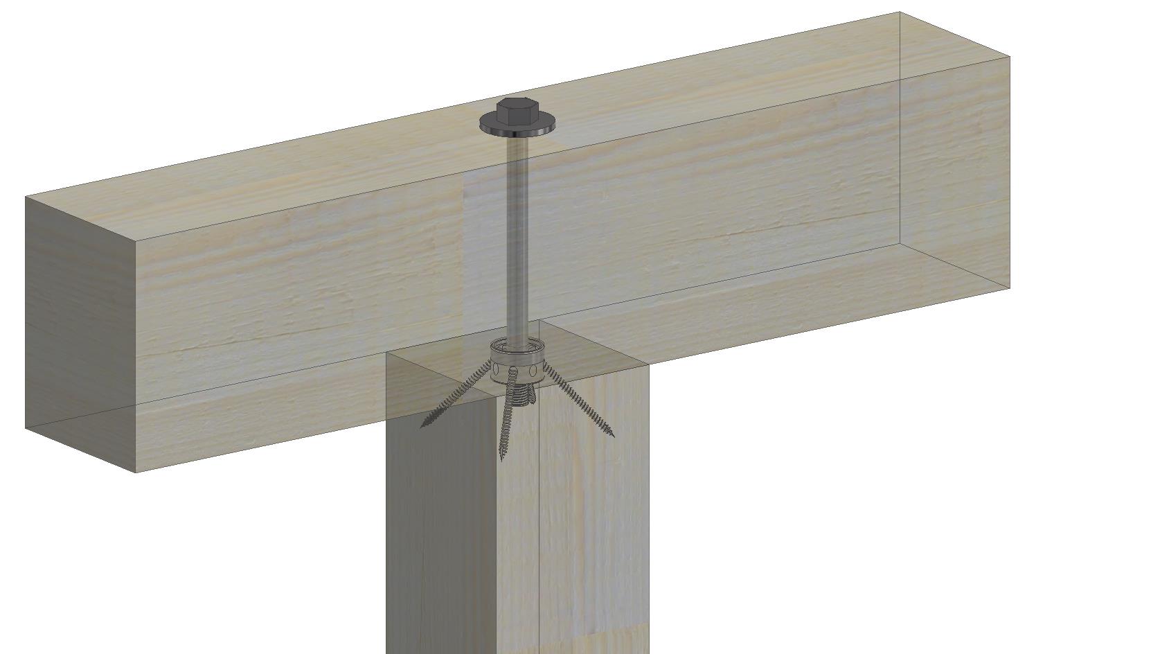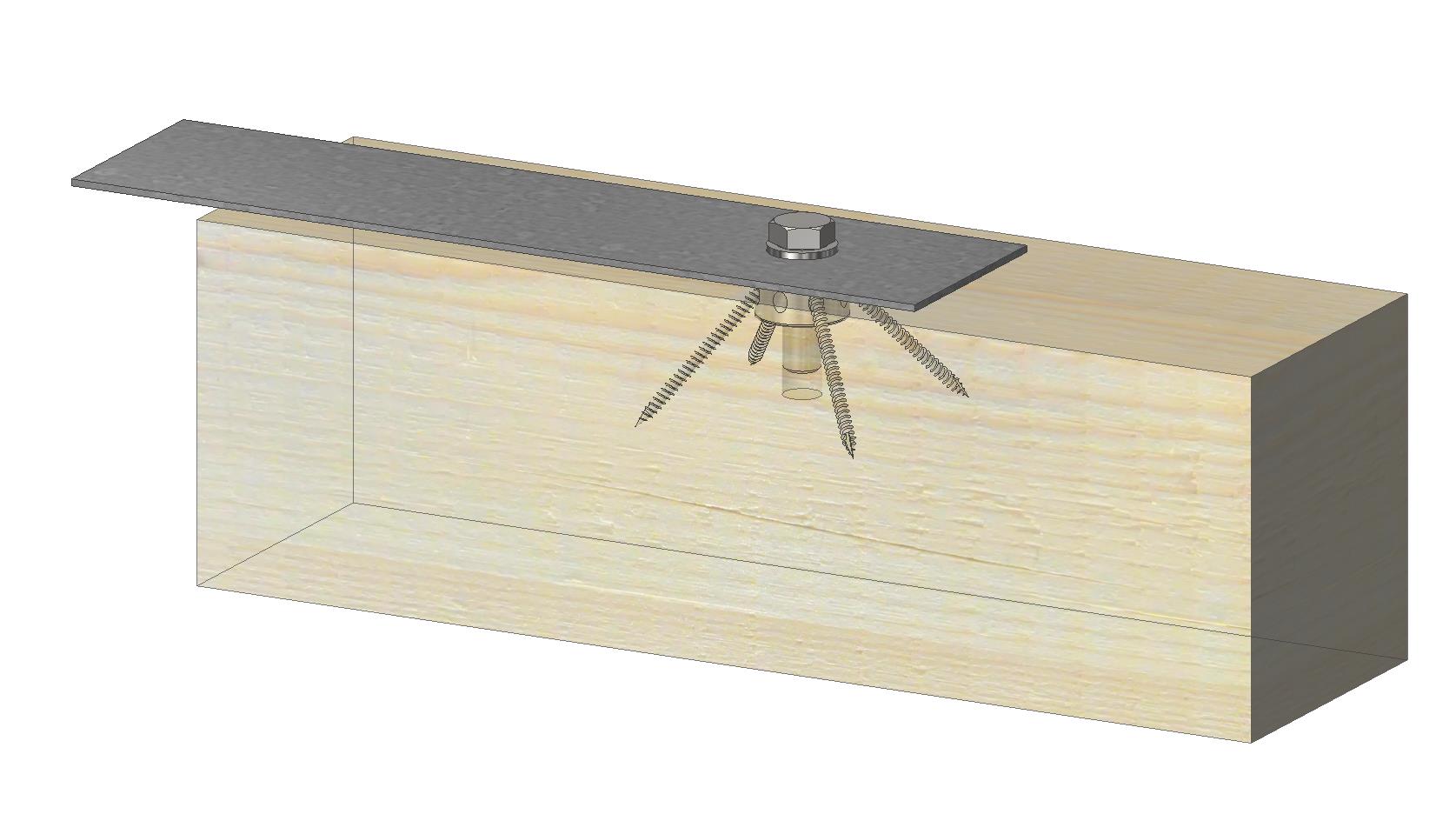Der Verbinder wird mit 4, 6 oder 8 CSFT-Schrauben ans Holz angeschlossen.