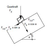 Sämtliche Belastungen sind in die o.g. Kraftkomponenten zu zerlegen, in der Kraftrichtung F2 sind nur abhebenden Werte zu berücksichtigen.
