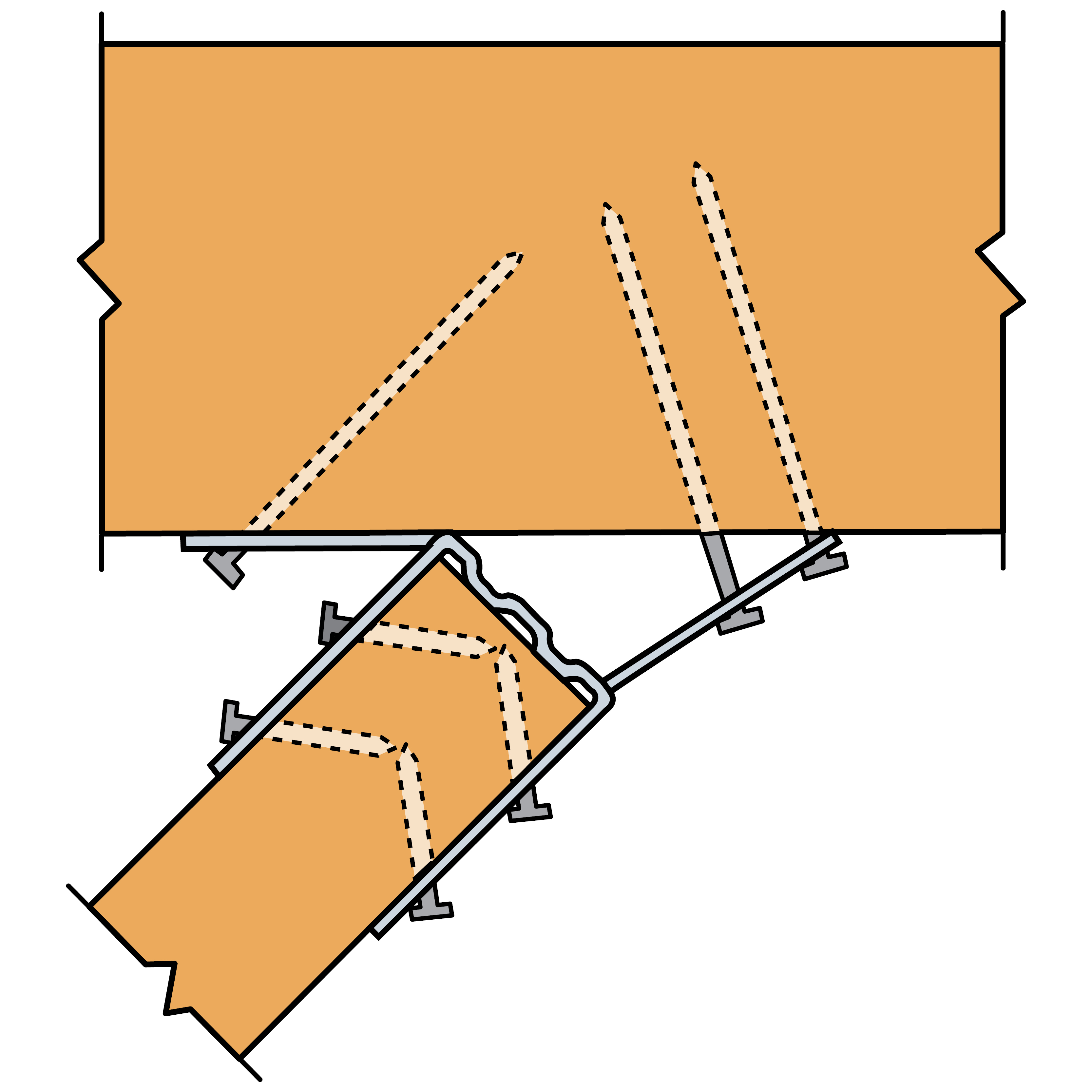 Die Verbinder dürfen nur einmal an die erforderliche Neigung oder Schräge angepasst werden. Ein mehrmaliges Biegen ist nicht zulässig.