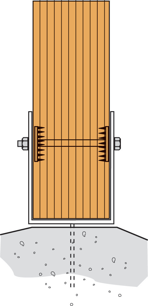 Für die Tragfähigkeit des Anschlusses sind die Tragfähigkeit des Scheibendübels und die des verwendeten Bolzens aufzuaddieren.