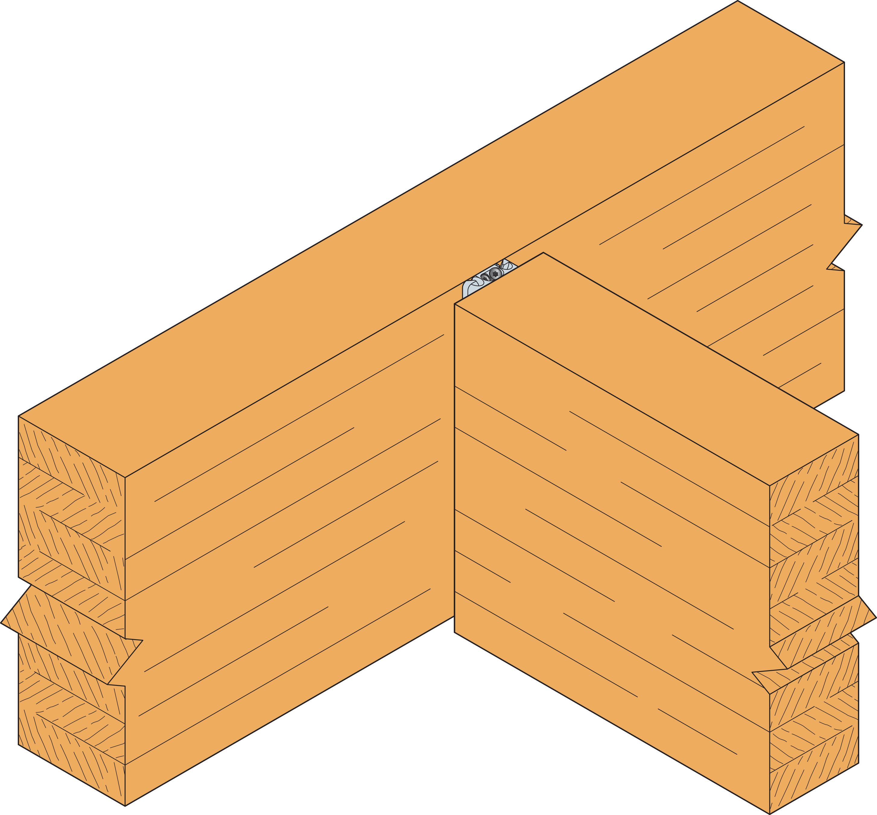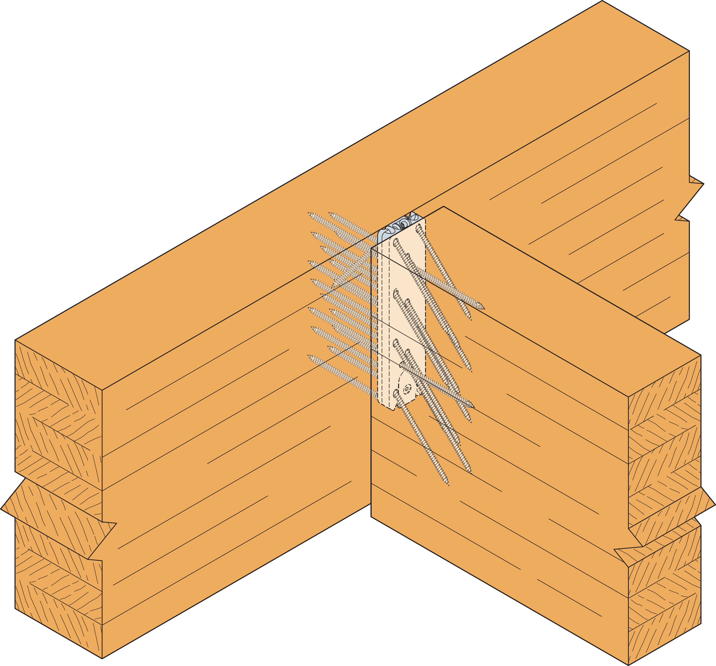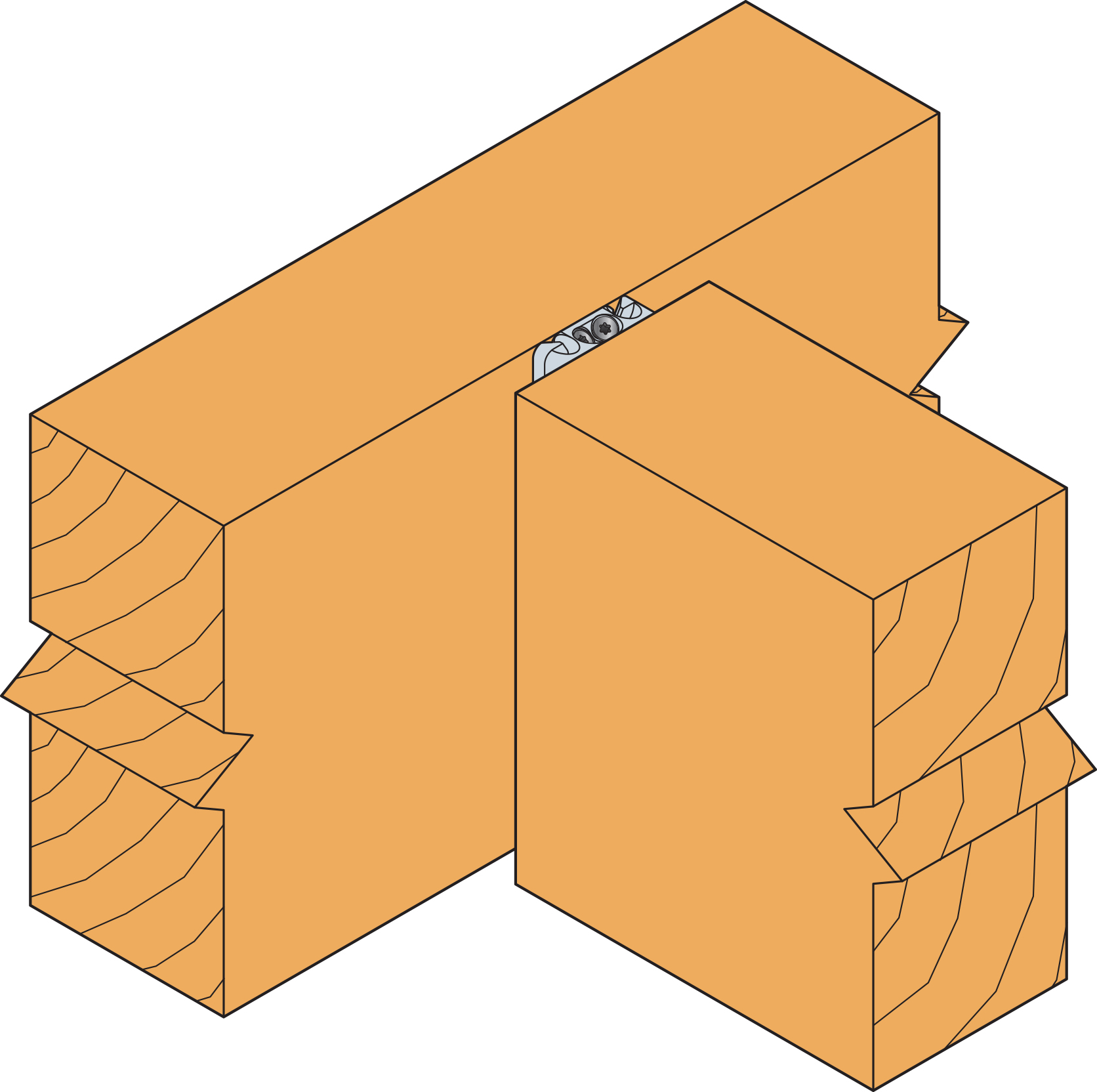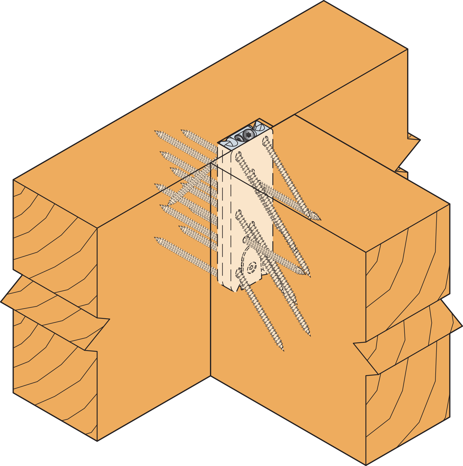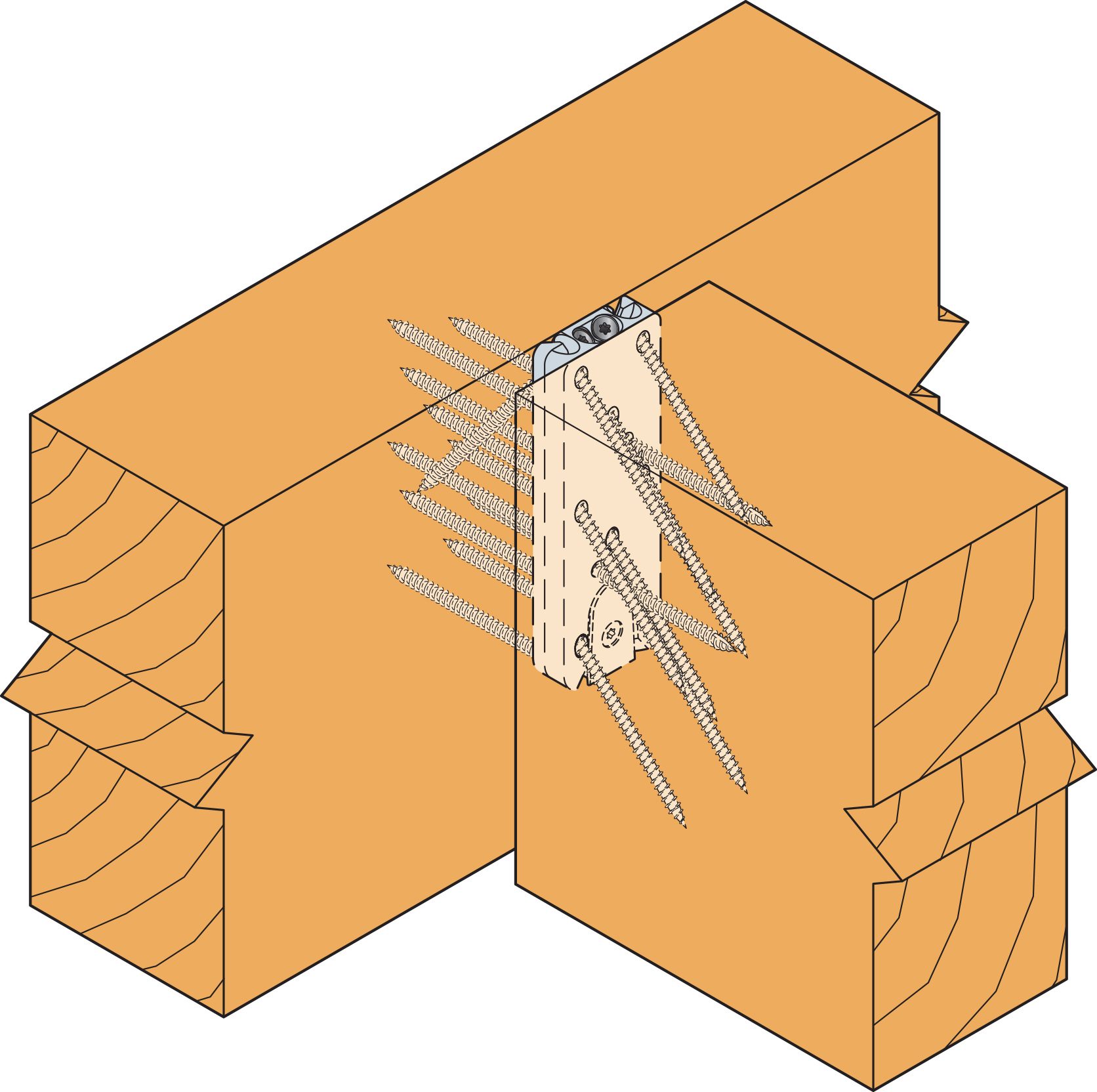 Der innenliegende, zweiteilige Hirnholzverbinder wird mit Schattenfuge oder ganz verdeckt montiert. Er eignet sich für Hauptträger-Nebenträger- ebenso wie für Pfosten-Riegel-Anschlüsse. Die Befestigung erfolgt mit unseren optimierten CSFT Vollgewindeschrauben.