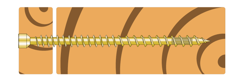 ESCRFTZ - Holzbauschrauben Ø 8.0 mm mit Zylinderkopf werden zur Verbindung von tragenden Holzbauteilen (zwei- bzw. mehrlagig) sowie insbesondere als Querzugverstärkung im konstruktiven Ingenieurholzbau (EC5) verwendet. Der Zylinderkopf mit Senkansatz lässt sich oberflächenbündig oder anwendungsspezifisch tiefer im Holzanbauteil versenken.