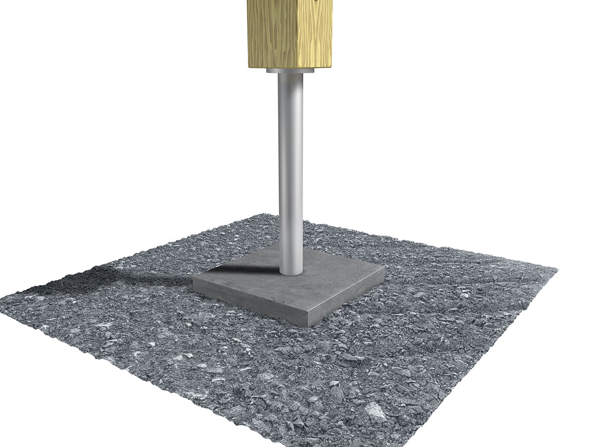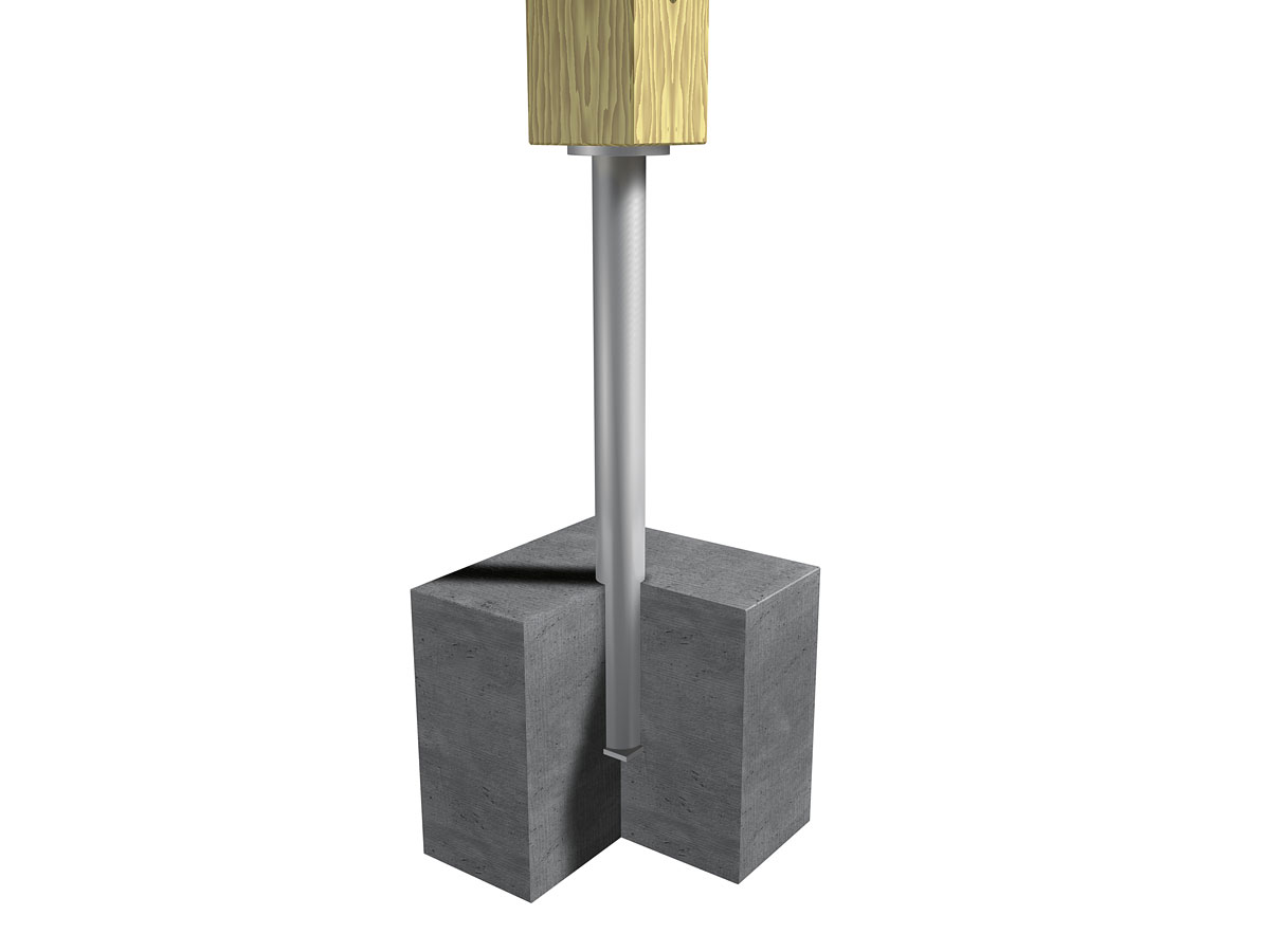 Die Stützenfüße sind zur Aufnahme von vertikalen Lasten geeignet und werden einbetoniert. Die Anbindung des PDs an die Stütze erfolgt durch eine Bohrung Ø24 mm. Durch die kraftschlüssige Verschraubung ist eine konstruktive Zugverankerung gewährleistet.