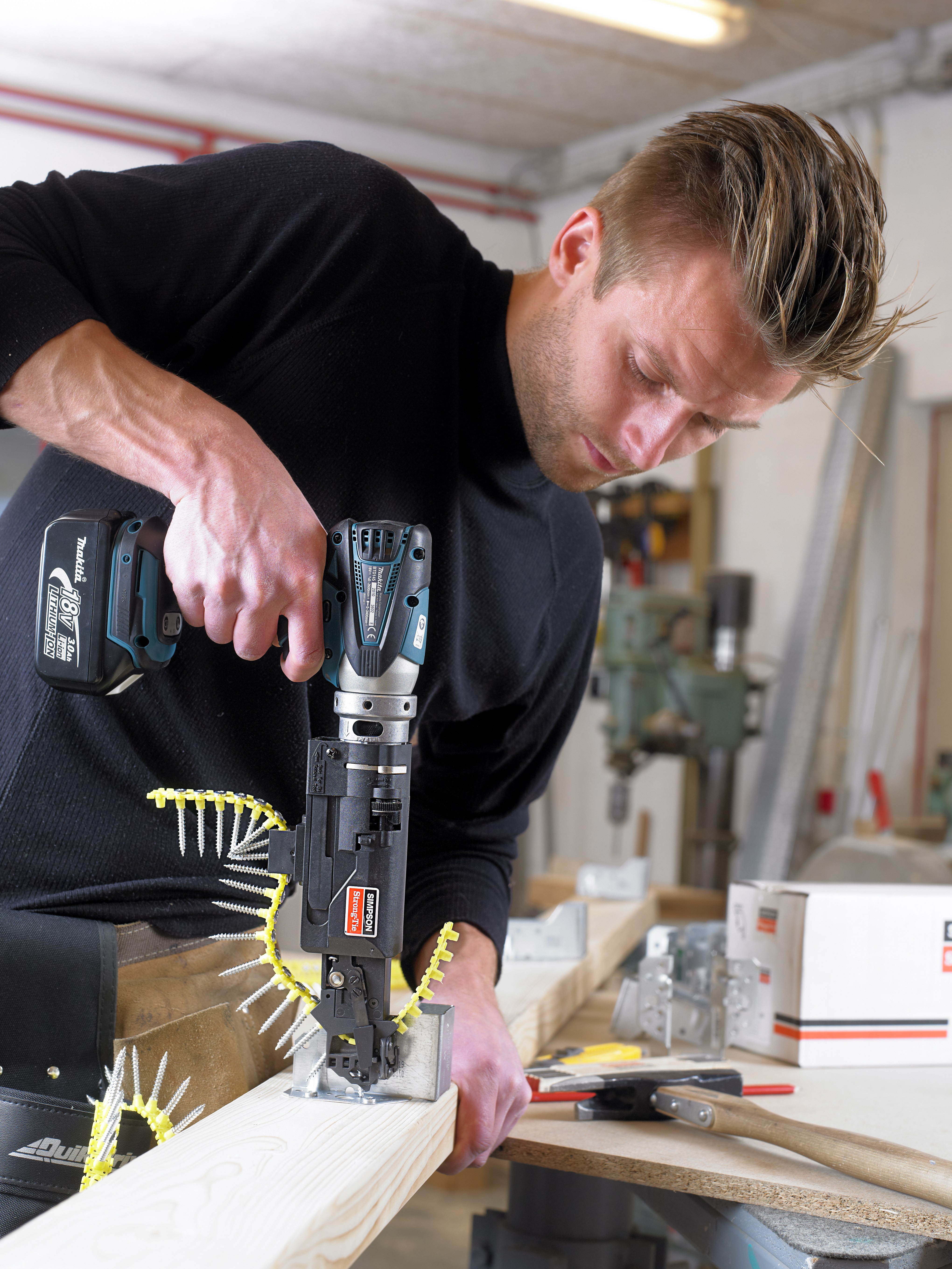 Für die Befestigung unserer Balkenschuhe oder Winkel auf Holzunterkonstruktionen. Geeignet für magazinierte Quik Drive® Schrauben des Typs CSA-T.