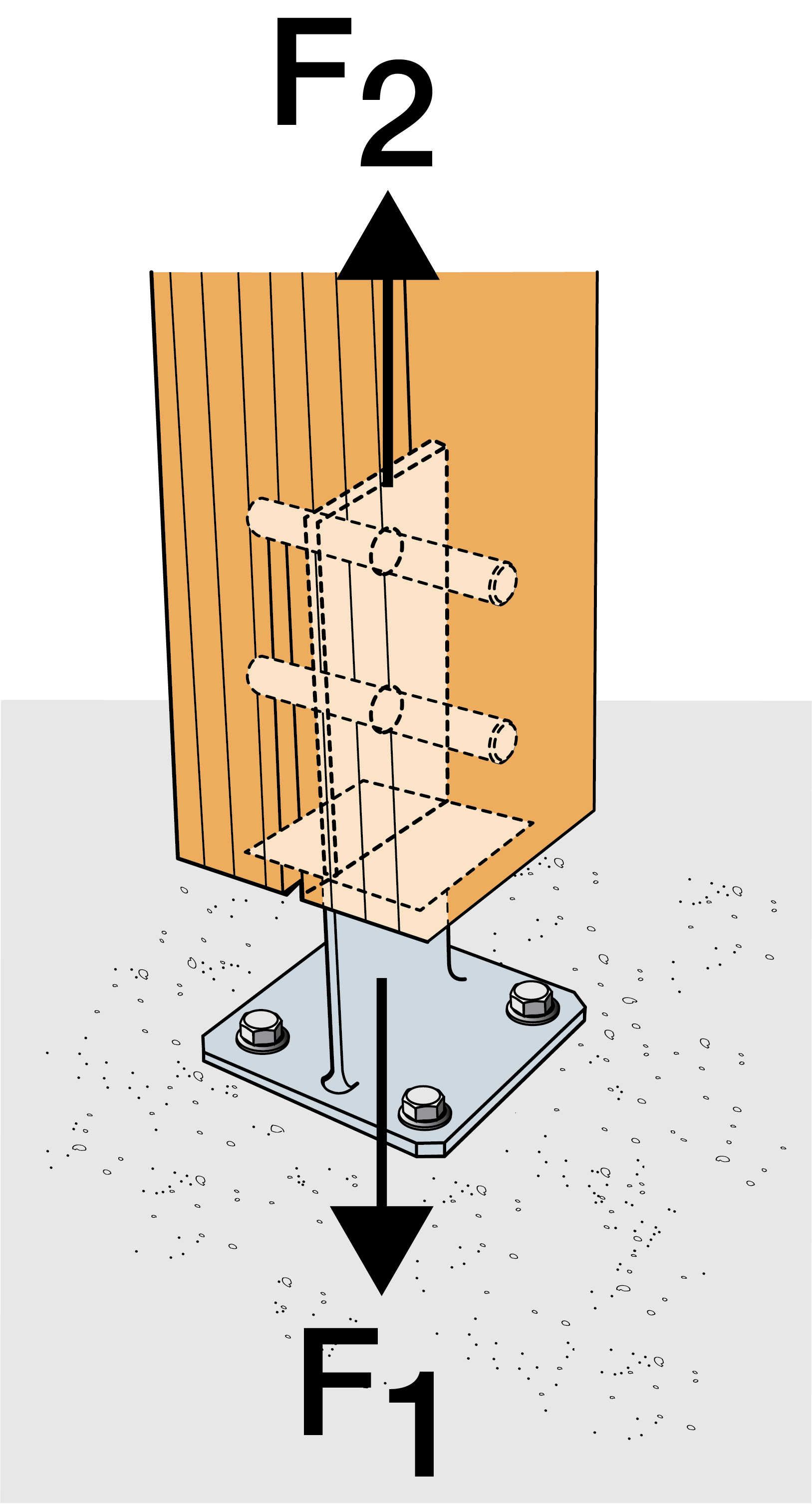 Sie finden ihre Verwendung bei der Befestigung von Holzpfosten und -stützen auf Fundamenten, worauf sie mit Dübeln, Steinschrauben o.ä. befestigt werden