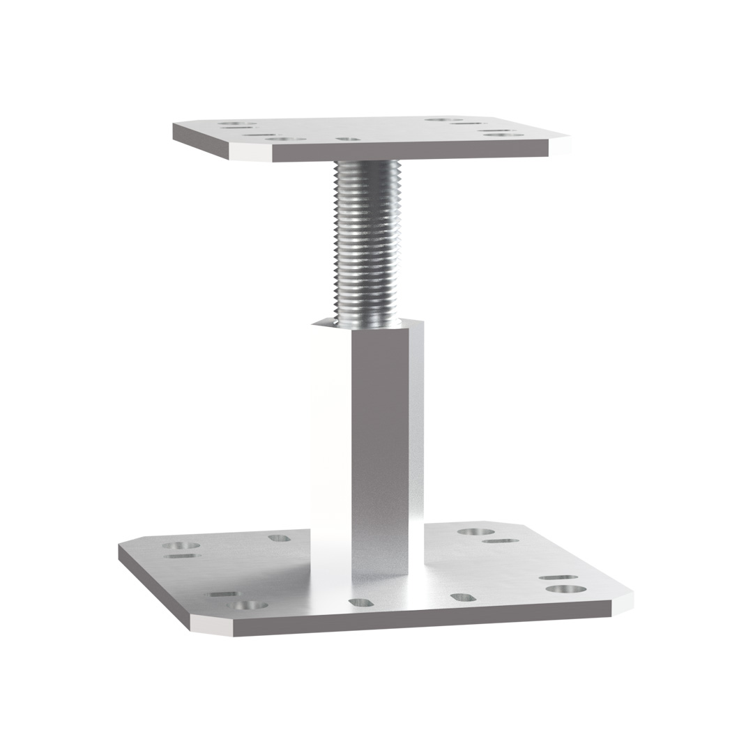 - Die PPRC Stützenfüße sind galvanischverzinkt und bestehen aus einem Stahlrohr mit angeschweißter Kopf- und Fußplatte.