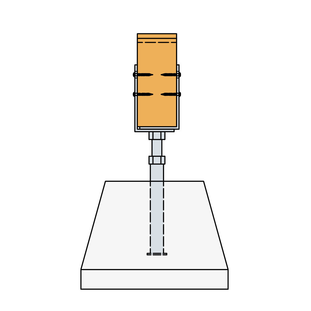 Die höhen- und seitenverstellbaren PVD Stützenfüße können für alle Holzbreiten zwischen 80-120/ 120-160 mm verwendet werden. Die PVD sind zum Einbetonieren.