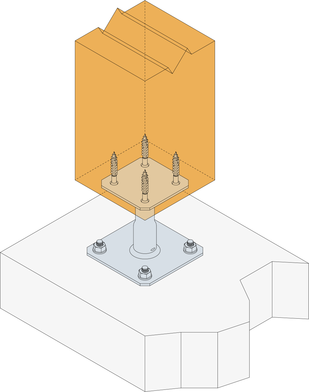 Mit diesen Kollektionen bekommt der Verarbeiter einen Pfostenanker und die zur Montage notwendigen Verbindungsmitteln in einem Paket geliefert.