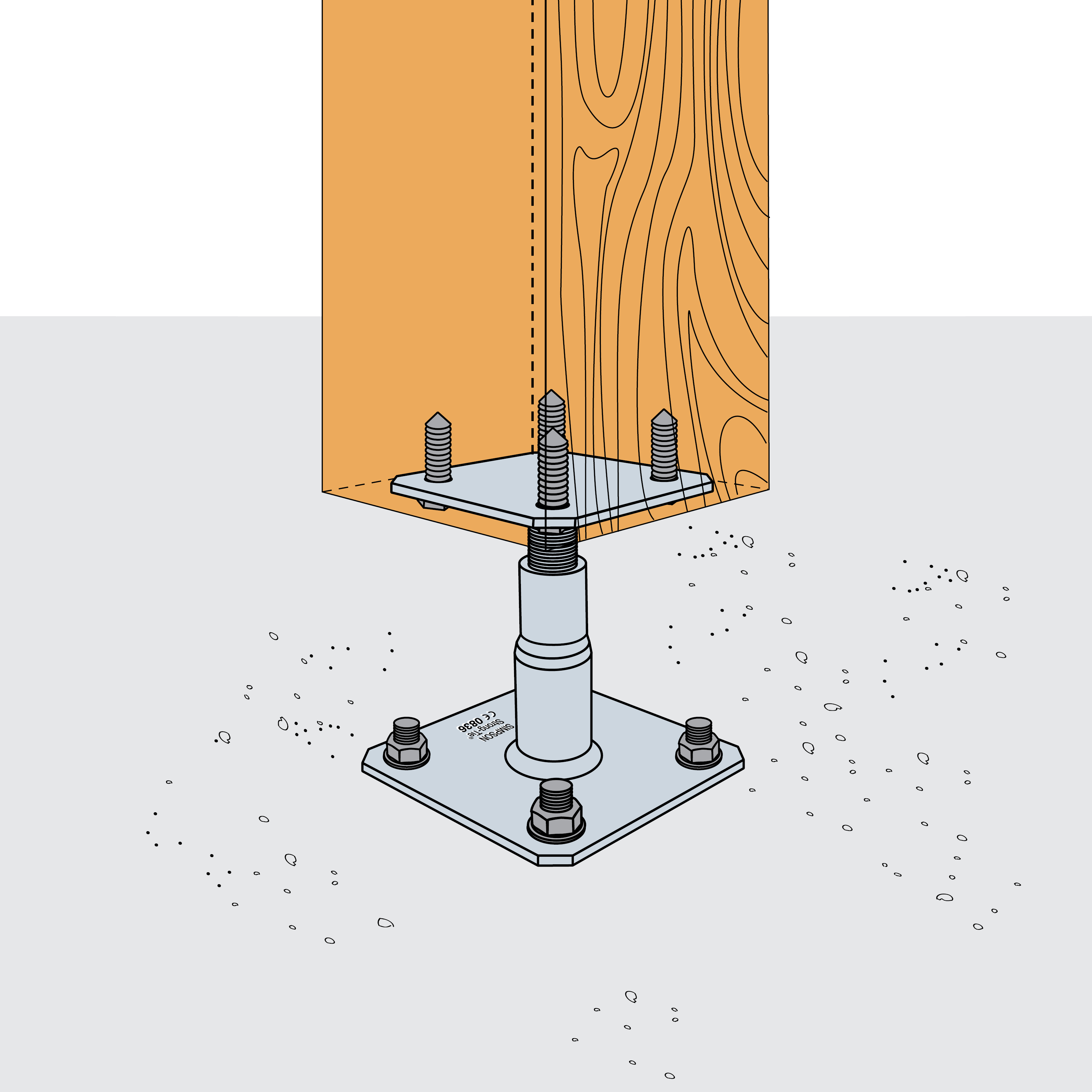 Die Stützenfüße sind für den Anschluss von Holzstützen aus NH oder BSH mit einem Querschnitt ab 10/10 cm geeignet
