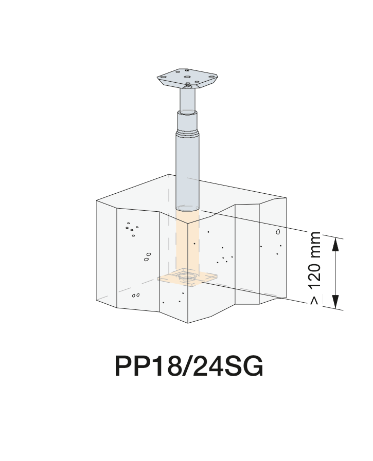 PP18 Stützenfüße sind für Stützen und zur Aufständerung von Wandkonstruktionen bei Holzbreiten ab 100 mm geeignet. Eine Höhenverstellung ist im Bereich von 180-240 mm möglich.