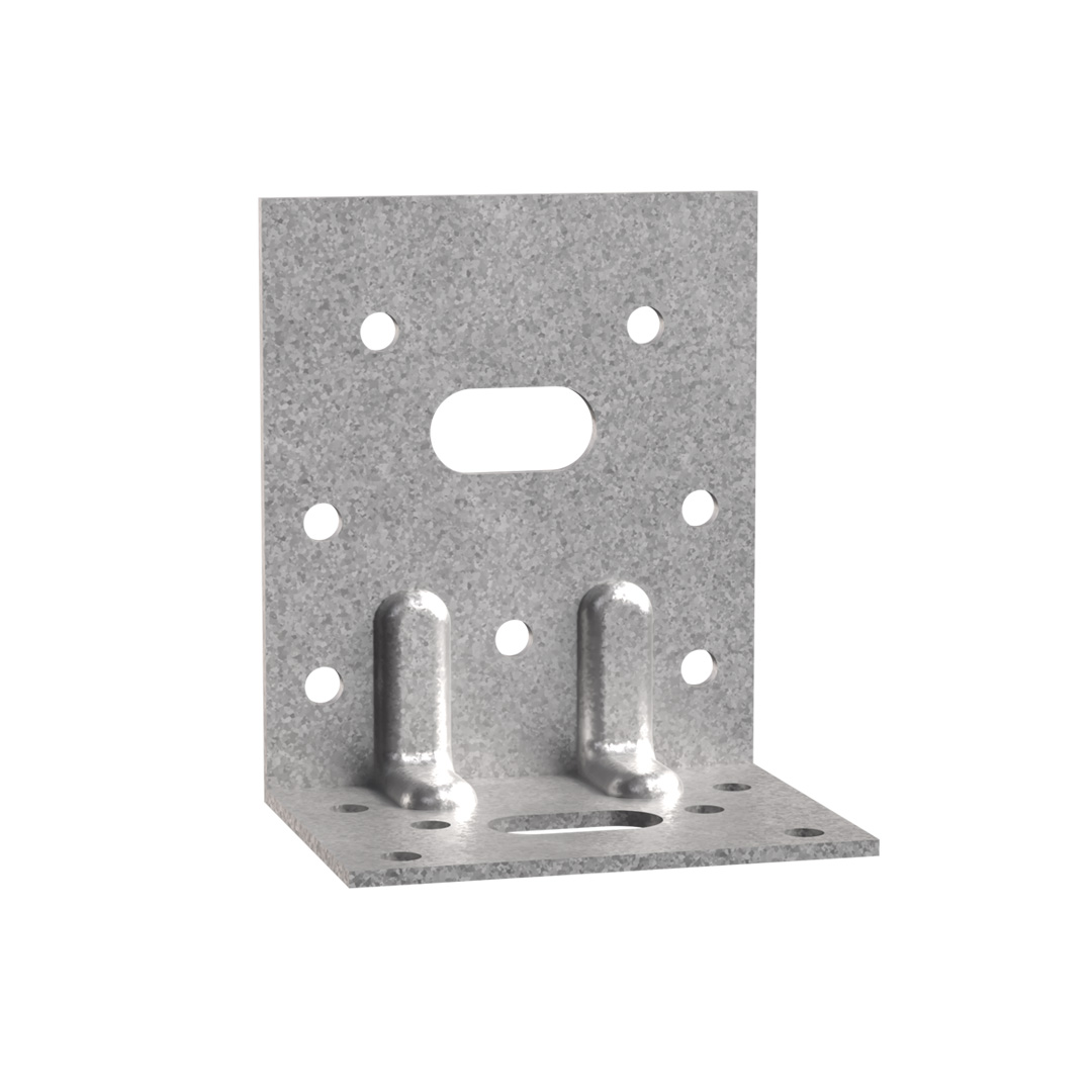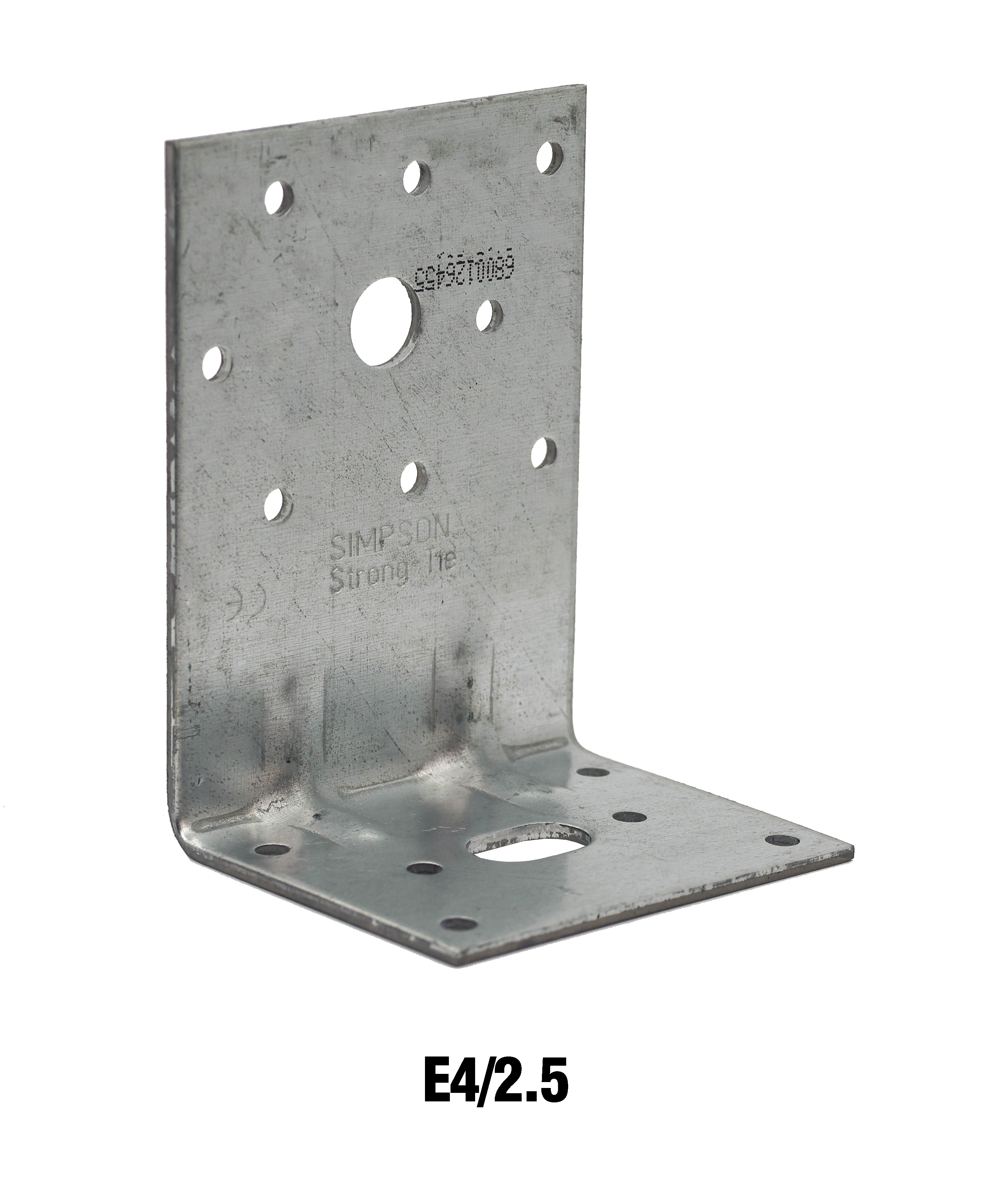 E4/2,5 Winkelverbinder werden aus 2,5 mm dickem, feuerverzinktem Stahlblech hergestellt und sind mit einer kleinen Rippenverstärkung versehen.