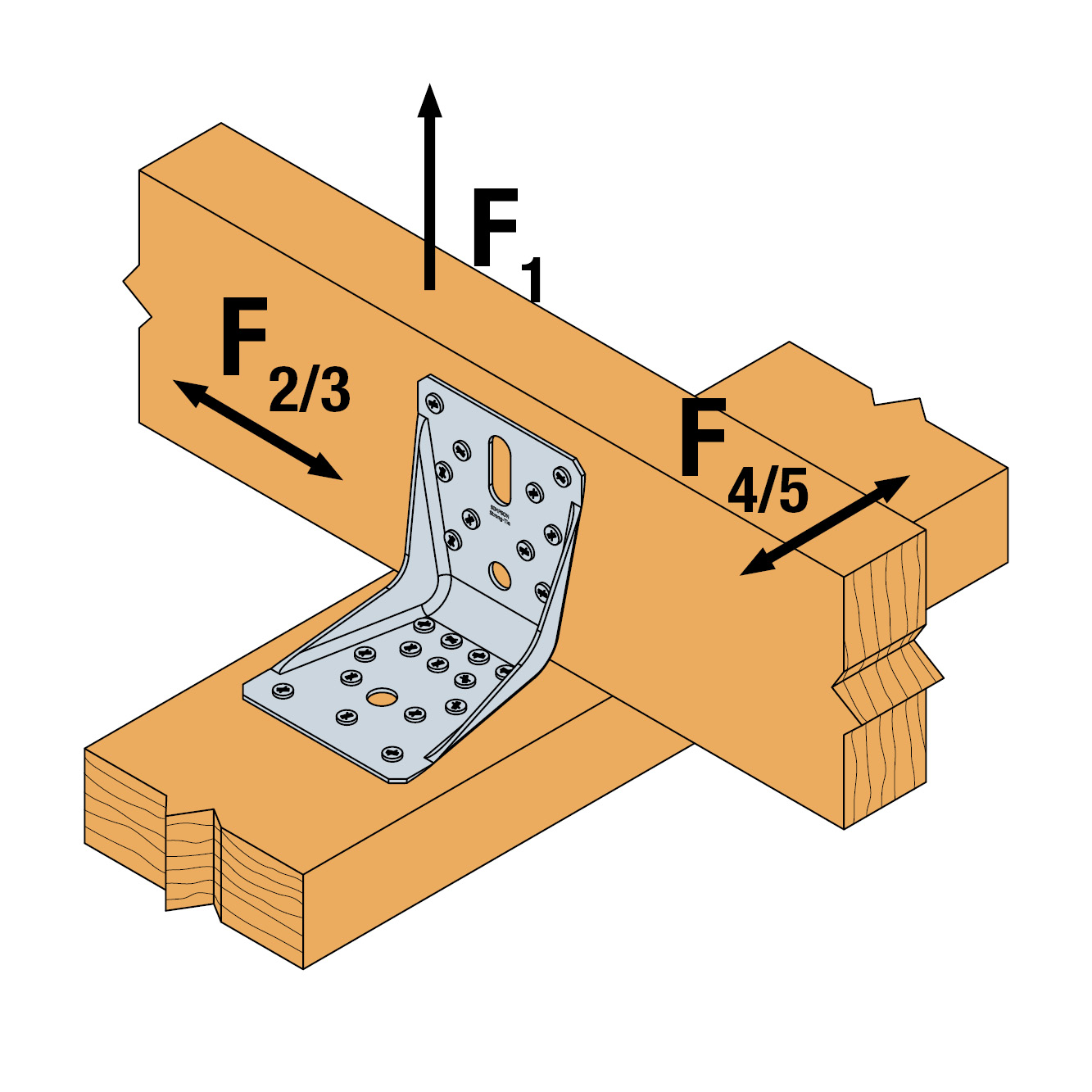 - ABR Winkelverbinder mit Rippe sind besonders für Anschlüsse von sich kreuzenden Balken geeignet, z.B. für Anschlüsse Sparren auf Pfetten und Pfetten auf Holzträger.