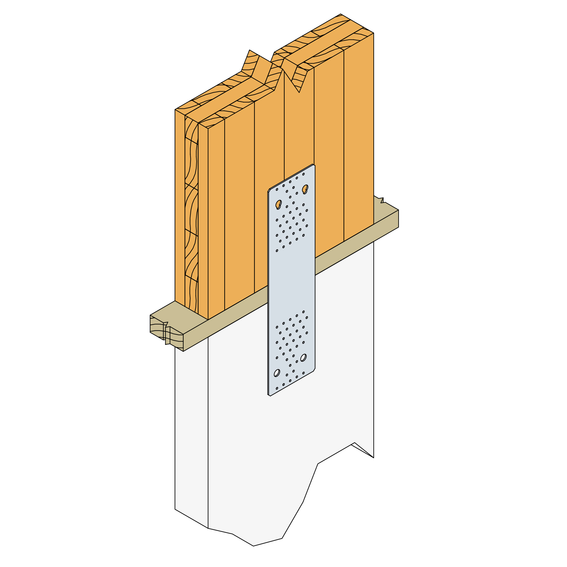 Die Zugbleche können sowohl bei Holz-Holz-Anschlüssen vorgesehen werden, als auch bei Anschlüssen an Beton.